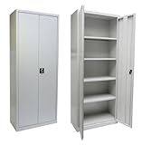 Pulverbeschichtet Ganzstahlkonstruktion Fertig montiert 2 türig 4 Fachböden (universell verstellbar) Innenliegende Scharniere und Schließgestänge Zylinderschloss mit 2 fach Verriegelung
